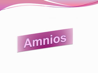 El amnios es una delgada membrana que limita la cavidad amniótica y envuelve al embrión. Se forma a partir de células del epiblasto llamadas amnioblastos que proliferan y tapizan el interior de las células del trofoblasto, formando una cúpula sobre la cavidad amniótica. Puede presentar alteraciones como el síndrome de bridas amnióticas cuando se producen desgarros en su cubierta interna.