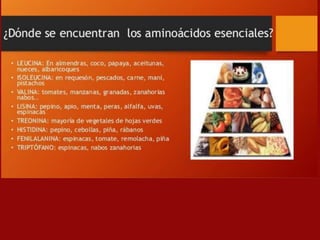 Los aminoácidos son compuestos orgánicos que contienen un grupo amino y carboxilo unidos al mismo carbono. Existen 20 aminoácidos comunes que forman las proteínas. Los aminoácidos se clasifican según la polaridad de su cadena lateral en neutros polares, polares o hidrófilos, y neutros no polares o hidrófobos. Nueve aminoácidos son esenciales y deben obtenerse de los alimentos.