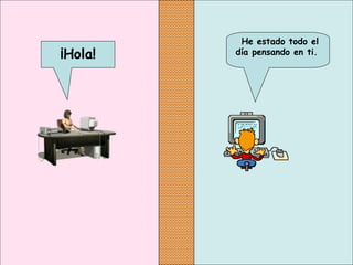 Este documento parece ser un intercambio de mensajes entre dos personas casadas que están teniendo una aventura. Intercambian mensajes de amor y afecto, y tratan de coordinar un encuentro a escondidas a las 6 pm, alegando tener otros compromisos. Comparten detalles sobre sus familias e hijos para reforzar la ficción de que son almas gemelas.