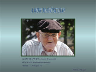 Un anciano visitaba a su esposa en un asilo todos los días a pesar de que ella sufría de Alzheimer avanzado y ya no lo reconocía. Cuando un médico le preguntó por qué continuaba visitándola si ella no sabía quién era él, el anciano respondió que aunque ella no lo reconociera, él sí sabía quién era ella, demostrando el verdadero amor que va más allá de lo físico o el romanticismo.