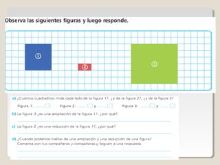 Una ampliación es hacer que una figura sea más grande, mientras que una reducción es hacer que una figura sea más pequeña. Las ampliaciones y reducciones se pueden identificar midiendo los lados de la figura original y transformada, y viendo si son más grandes o más pequeños.