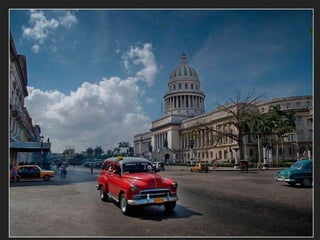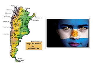 El documento describe el origen de los nombres de varios países latinoamericanos. Explica que Argentina viene de la palabra latina para plata, debido a los yacimientos de plata en la región. Brasil toma su nombre de un árbol rojizo encontrado por los portugueses. Chile proviene de una palabra aimara que significa nieve o límite del mundo. Cuba fue nombrada por Cristóbal Colón en honor a la hija de los Reyes Católicos.