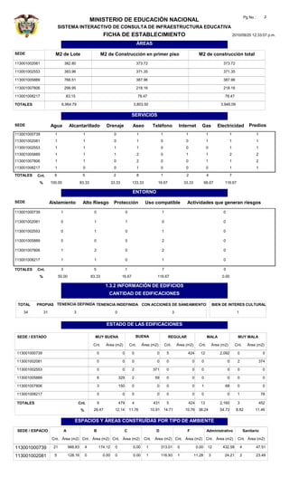 Este documento proporciona información general sobre la Institución Educativa Ana María Vélez de Trujillo en Cartagena, Bolívar, Colombia. La institución atiende a 3035 estudiantes en 6 sedes diferentes y cuenta con un total de 8 predios. La mayoría de los predios son propiedad oficial y cuentan con servicios básicos como agua y electricidad, aunque algunas sedes aún no tienen alcantarillado o internet.