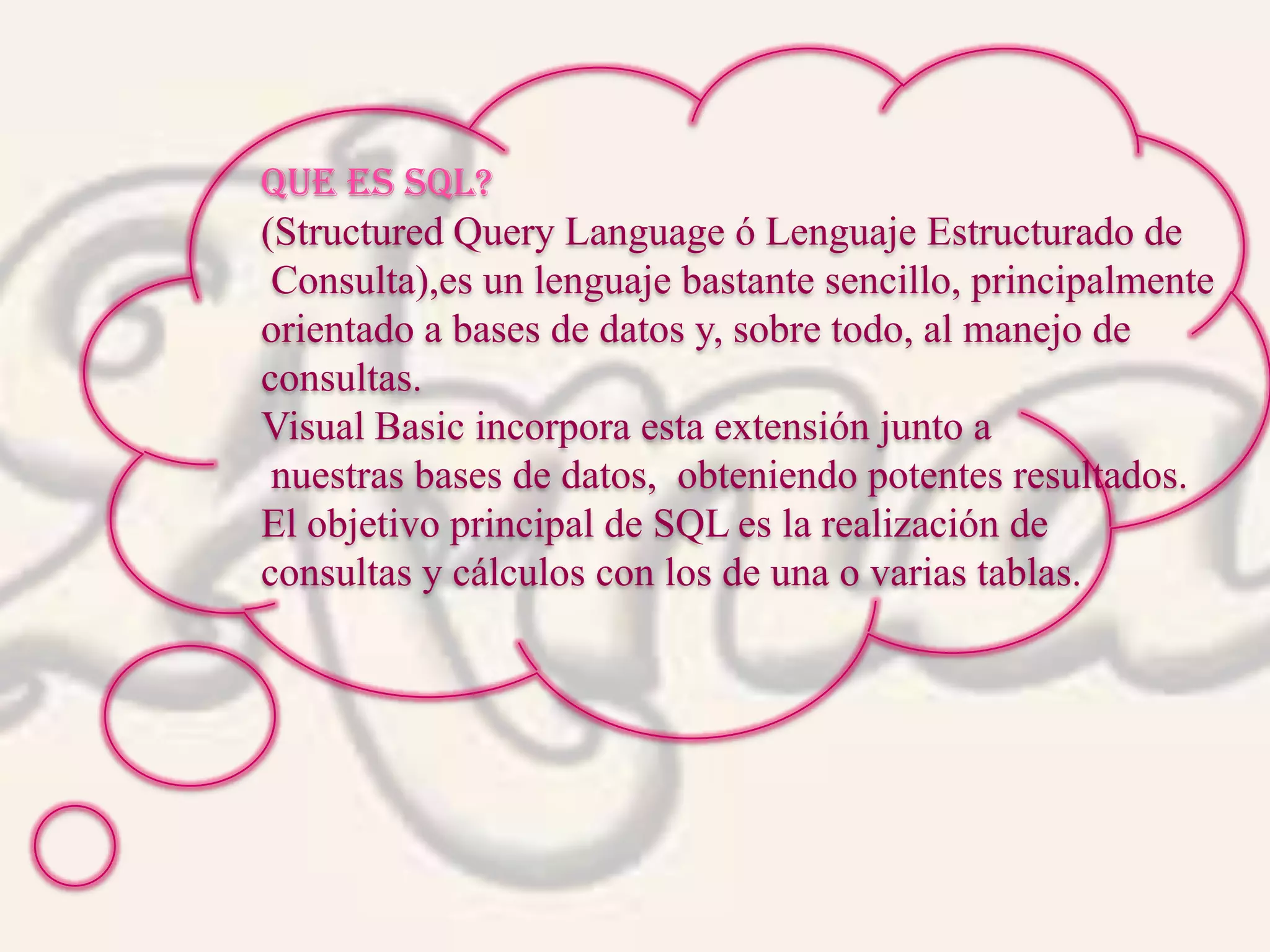 Este documento proporciona instrucciones sobre cómo utilizar SQL en Visual Basic. Explica que SQL es un lenguaje orientado a bases de datos para realizar consultas. Detalla los principales comandos SQL como SELECT, INSERT, UPDATE y DELETE. También proporciona consejos para escribir consultas SQL como el uso de corchetes para los nombres de campos y tablas con varias palabras y el refresco del control Data después de insertar una consulta SQL.
