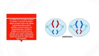 La anafase II es una etapa clave en la meiosis en la que las cromátidas hermanas se separan y se mueven hacia polos opuestos de la célula. Este proceso asegura la correcta segregación de los cromosomas y la formación de células hijas haploides genéticamente distintas.