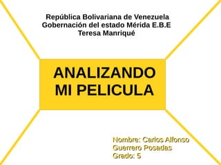 Carlos analiza la película favorita "Minions". Identifica a los personajes principales como Gru, Lucy y los Minions. Menciona personajes secundarios como El Macho y Don Traseron. Explica que la historia se desarrolla en la casa de Gru en el 2013. Comenta que el drama gira en torno a Gru enfrentándose con el villano El Macho. Finalmente, resume que Gru se casa con Lucy y las niñas están felices, aprendiendo sobre el amor verdadero.