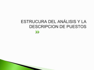 El documento aborda el análisis de puestos, destacando la importancia de definir tareas, responsabilidades y requisitos necesarios para cada puesto de trabajo. Este proceso sistemático permite elaborar descripciones y especificaciones del puesto, optimizar la carga laboral, seleccionar candidatos adecuados y cumplir con requisitos legales. A través de diversas metodologías como entrevistas y observaciones, se recopila información esencial para facilitar la gestión de personal y mejorar el entorno laboral.