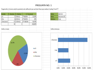 Este documento presenta las 9 preguntas de una encuesta sobre temas ecológicos, incluyendo preguntas sobre la disposición de las personas a contribuir económicamente a causas ecológicas, la importancia de la ecología para el funcionamiento de las empresas, y conocimientos sobre tecnologías verdes.