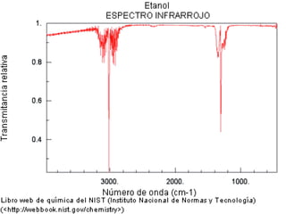 Este documento presenta información sobre el espectro infrarrojo. En menos de 3 oraciones: Describe las diferentes regiones del espectro infrarrojo, los tipos de vibraciones moleculares que pueden observarse y algunos de los componentes básicos de un espectrofotómetro infrarrojo.