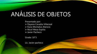 Este documento presenta los análisis morfológico, funcional, estructural, tecnológico, económico, comparativo, relacional y evolutivo de tres objetos: una silla de madera, un inodoro y un circuito eléctrico. Incluye descripciones detalladas de cada objeto y los materiales que lo componen, así como explicaciones de sus funciones, estructuras, procesos de fabricación, costos, comparaciones con otros objetos y orígenes históricos. Concluye que los análisis ayudan a ent