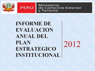 El documento trata sobre el comercio exterior del Perú y establece como objetivo estratégico general lograr un incremento sostenido del intercambio comercial, haciendo énfasis en las exportaciones de sectores no tradicionales, y consolidar la imagen del Perú como país exportador de bienes y servicios competitivos.