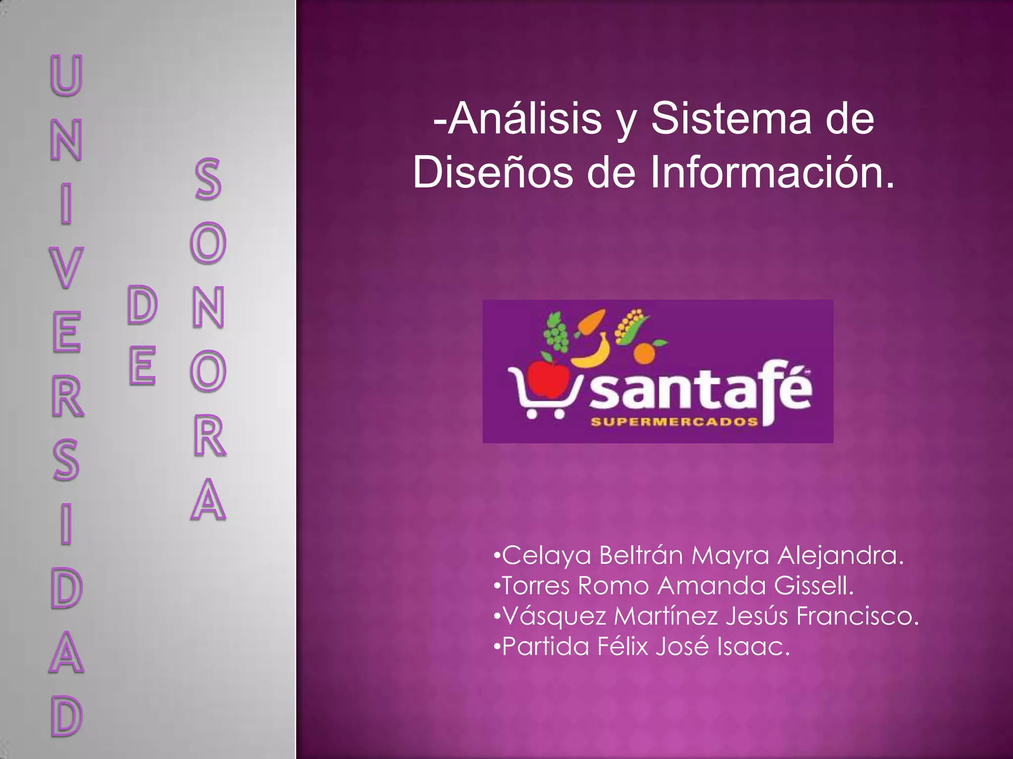 Supermercados Organizados, S.A. de C.V. es una empresa fundada en 2009 en Sonora, México que opera tiendas de autoservicio Santafé. La empresa comenzó con 5 tiendas y ha crecido a más de 78,000 metros cuadrados de espacio de ventas y 3,200 empleados. Su misión es ofrecer productos de alta calidad a bajo precio para apoyar la economía local. Su visión incluye la expansión a otros estados mexicanos y posiblemente los Estados Unidos. El sistema analizado es un sistema administrativo de