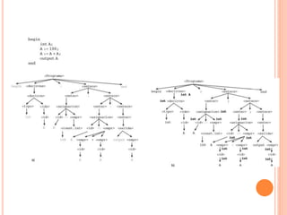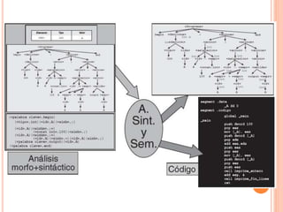 Este documento presenta una introducción al análisis semántico en los compiladores. Explica que el análisis semántico verifica la corrección semántica del programa mediante la comprobación de objetivos como la declaración previa de identificadores y variables. También describe las diferencias entre compiladores de un solo paso y de múltiples pasos, y cómo se implementa el análisis semántico en cada caso. Finalmente, introduce conceptos clave como gramáticas de atributos, árboles sintácticos atribuidos y gra