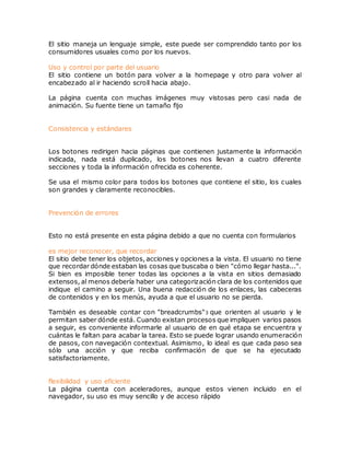 El sitio funciona de forma fluida y brinda información al usuario sobre el