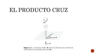 Este documento presenta los fundamentos del análisis vectorial. Introduce conceptos clave como escalares, vectores, campos escalares y vectoriales. Explica cómo representar vectores usando sistemas de coordenadas cartesianas, incluyendo descomponer un vector en sus componentes a lo largo de los ejes x, y y z. También cubre sumas y multiplicaciones básicas de vectores.
