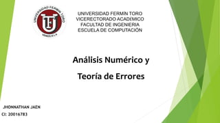 El análisis numérico es una rama de las matemáticas que desarrolla algoritmos para resolver problemas aritméticos y simular procesos complejos, considerando errores en los cálculos. Se presentan conceptos como error absoluto, error relativo y las fuentes de error como truncamiento y redondeo, junto a su impacto en la precisión de los resultados. Además, se discuten cálculos estables e inestables, donde pequeñas variaciones en datos de entrada pueden afectar enormemente las salidas, resaltando la importancia de una buena condición del problema.