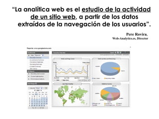 Este documento presenta los conceptos clave de la analítica web y cómo se puede utilizar para mejorar el rendimiento de un sitio web. Explica que la analítica web mide la actividad de los usuarios en un sitio para proporcionar información que puede usarse para tomar decisiones. También describe diferentes métricas y herramientas que se pueden usar para medir distintos objetivos, como visitas, tasas de rebote, ingresos o conversiones. Finalmente, enfatiza que analizar los datos de los usuarios puede ayudar a mejorar la propuesta de conten