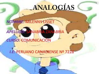 Este documento resume los conceptos básicos de las analogías, incluyendo su estructura, elementos y resolución. Explica que una analogía establece una relación de semejanza entre dos pares de términos, y que el objetivo es identificar la alternativa que mantiene la misma relación. Proporciona un ejemplo para ilustrar el proceso de resolución de una analogía al comparar las características de cada opción.