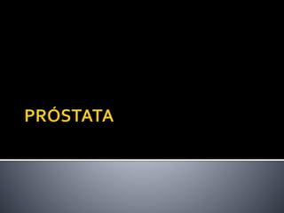 La próstata es una glándula del tamaño de una nuez que se encuentra debajo de la vejiga, pesa entre 20-25 gramos y mide aproximadamente 3x4x2.5 cm. Está compuesta principalmente de tejido periférico en un 70%, mientras que el tejido central y de transición representan solo el 20% y 10% respectivamente. Recibe su irrigación sanguínea de la arteria ilíaca interna.