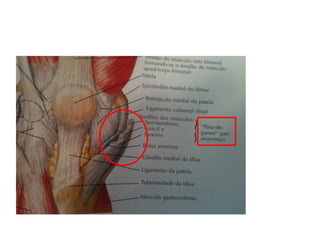 El documento proporciona una revisión anatómica de los músculos principales de la espalda, hombro, brazo, muslo y pierna. Incluye imágenes y etiquetas en portugués que identifican cada músculo y su ubicación desde diferentes ángulos, como la vista posterior, medial y lateral.