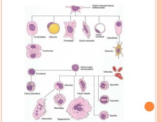 Este documento presenta una introducción a la anatomía. Explica que la anatomía estudia la estructura de los seres vivos y define los diferentes niveles de organización biológica, incluyendo la célula, el tejido, el órgano y el sistema. Luego describe las células procariotas y eucariotas, los componentes celulares como el núcleo y las mitocondrias, y los diferentes tipos de epitelio. Finalmente, introduce los tejidos conectivos, el cartílago y el hueso.