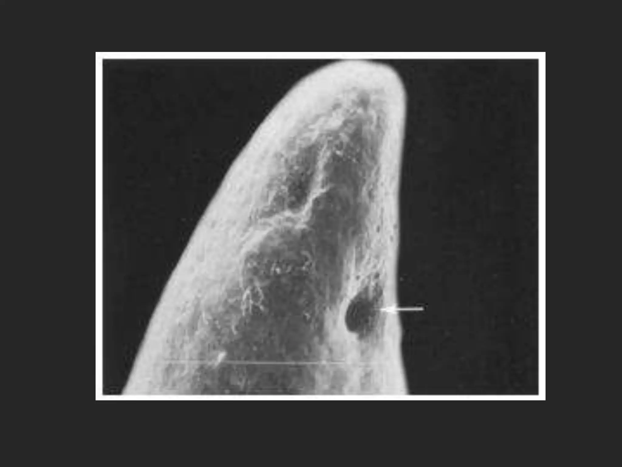 El documento describe la anatomía del tercio apical de la raíz dental. Explica la embriología de la formación de la raíz, los tejidos que componen el tercio apical (pulpa, dentina, cemento, ligamento periodontal, hueso alveolar), y aspectos anatómicos como la constricción apical, el foramen apical y las características de los conductos laterales y cementario.