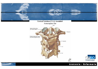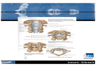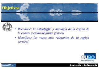 Este documento describe la anatomía de la cabeza y el cuello. Resume la osteología del cráneo, incluidos los huesos craneales y faciales, y la columna cervical. También describe la miología de la cara y el cuello, incluidos los músculos masticadores y del cuello. Finalmente, identifica las principales arterias y venas de la región cervical, como la arteria carótida común, la arteria vertebral y la vena yugular interna.