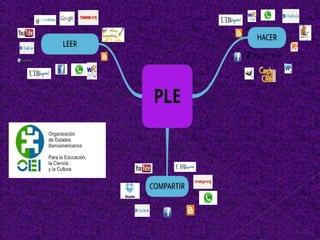 Este documento describe el Personal Learning Environment (PLE), un modelo para el aprendizaje autogestionado mediante el uso de nuevas tecnologías. El PLE promueve que los estudiantes tomen el control de su propio aprendizaje al diseñar y gestionar sus objetivos, contenidos y elementos de comunicación. Luego, el documento presenta la anatomía del PLE del autor, incluyendo las herramientas que utiliza para la búsqueda, producción y publicación de contenidos con fines de aprendizaje.