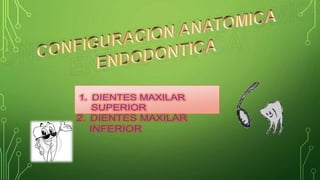 El documento detalla la anatomía endodóntica, subrayando la importancia del conocimiento interno del diente y la radiografía en la práctica endodóntica. Describe las variaciones estructurales de los conductos radiculares según diferentes dientes, así como las consideraciones clínicas necesarias para el tratamiento. Se enfatiza que el acceso y la instrumentación adecuada dependen de la comprensión de la configuración anatómica y las características específicas de cada diente.
