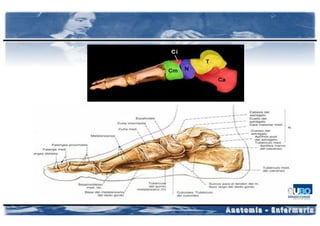 3) El miembro inferior incluye el fémur, la tibia, el peroné y los huesos del pie