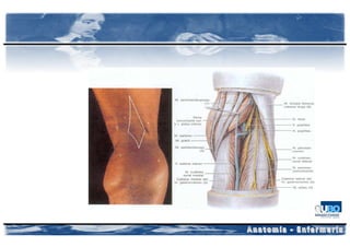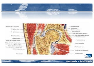 El documento proporciona información sobre la anatomía de la región glútea, la pelvis, el miembro inferior y el pie. En resumen: