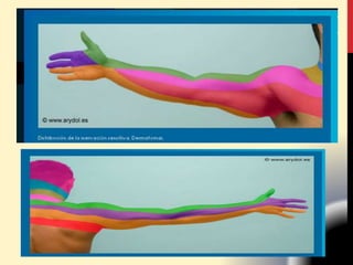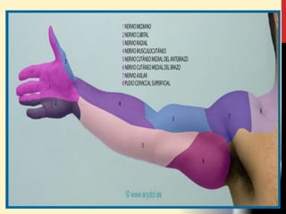 Este documento describe la anatomía del miembro superior humano. Resume las principales regiones, huesos y músculos del hombro, brazo y antebrazo. Describe los huesos de la cintura escapular como la clavícula y la escápula, así como los huesos del brazo como el húmero, el radio y el cúbito. También resume los principales músculos de estos grupos musculares, incluidos los músculos deltoides, supraespinoso, infraespinoso y otros músculos del hombro