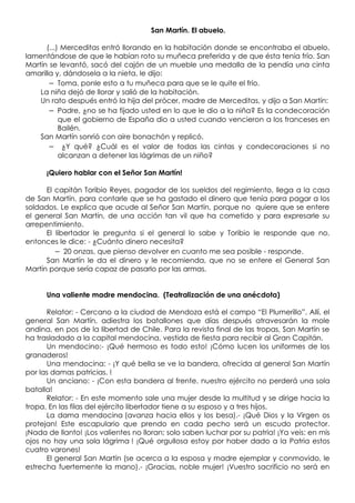 El General San Martín visita el cuartel del batallón de artillería de los Andes donde se encuentra acuartelado. Al querer entrar al laboratorio donde fabricaban municiones, el centinela se lo impide por protocolos de seguridad a pesar de que San Martín dice ser el General en jefe. Tras cambiarse de ropa para cumplir con los protocolos, San Martín logra entrar y examinar el laboratorio. Luego felicita y recompensa al centinela por haber cumplido estrictamente con su deber.