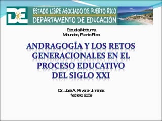 El documento presenta información sobre la educación de adultos (andragogía) y los retos del proceso educativo en el siglo XXI. Aborda las diferencias entre la educación de niños, adolescentes y adultos, así como las características de diferentes generaciones actuales. El objetivo es capacitar a los maestros para identificar nuevos paradigmas educativos y desarrollar altos niveles de pensamiento en los estudiantes.
