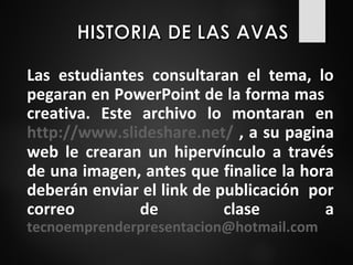 Las estudiantes crearán una presentación en PowerPoint sobre un tema y la publicarán en SlideShare, agregando un hipervínculo a la presentación en su página web. Antes del final de la clase, enviarán por correo electrónico el enlace de publicación.