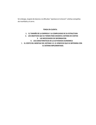 Los costos son los recursos necesarios para operar una empresa y están divididos en costos fijos, que permanecen igual independientemente de la producción, y costos variables, que cambian según la producción. Mantener los costos fijos en niveles mínimos es clave para el éxito de una organización. Al implementar estrategias de reducción de costos adecuadas considerando factores como el tamaño de la empresa y sus objetivos, una empresa puede asegurar su rentabilidad a largo plazo.