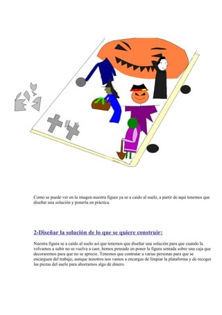 El proyecto consistió en construir una figura estable para una carroza después de que la figura original se cayera. Se contrató a un obrero para construir una nueva figura sentada en un ataúd y a un pintor para decorarla. Tras 6 días de construcción y 3 de pintura, la figura fue comprobada y subida a la plataforma, completando con éxito el proyecto de construir una figura estable para la carroza por un coste total de 574,90 euros.