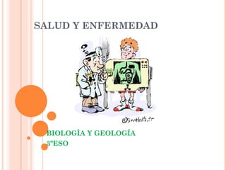El documento habla sobre la salud y la enfermedad. Define la salud como un completo bienestar físico, mental y social según la OMS, no solo la ausencia de enfermedad. Una enfermedad se define como cualquier alteración o anomalía en el funcionamiento del organismo que causa un trastorno.