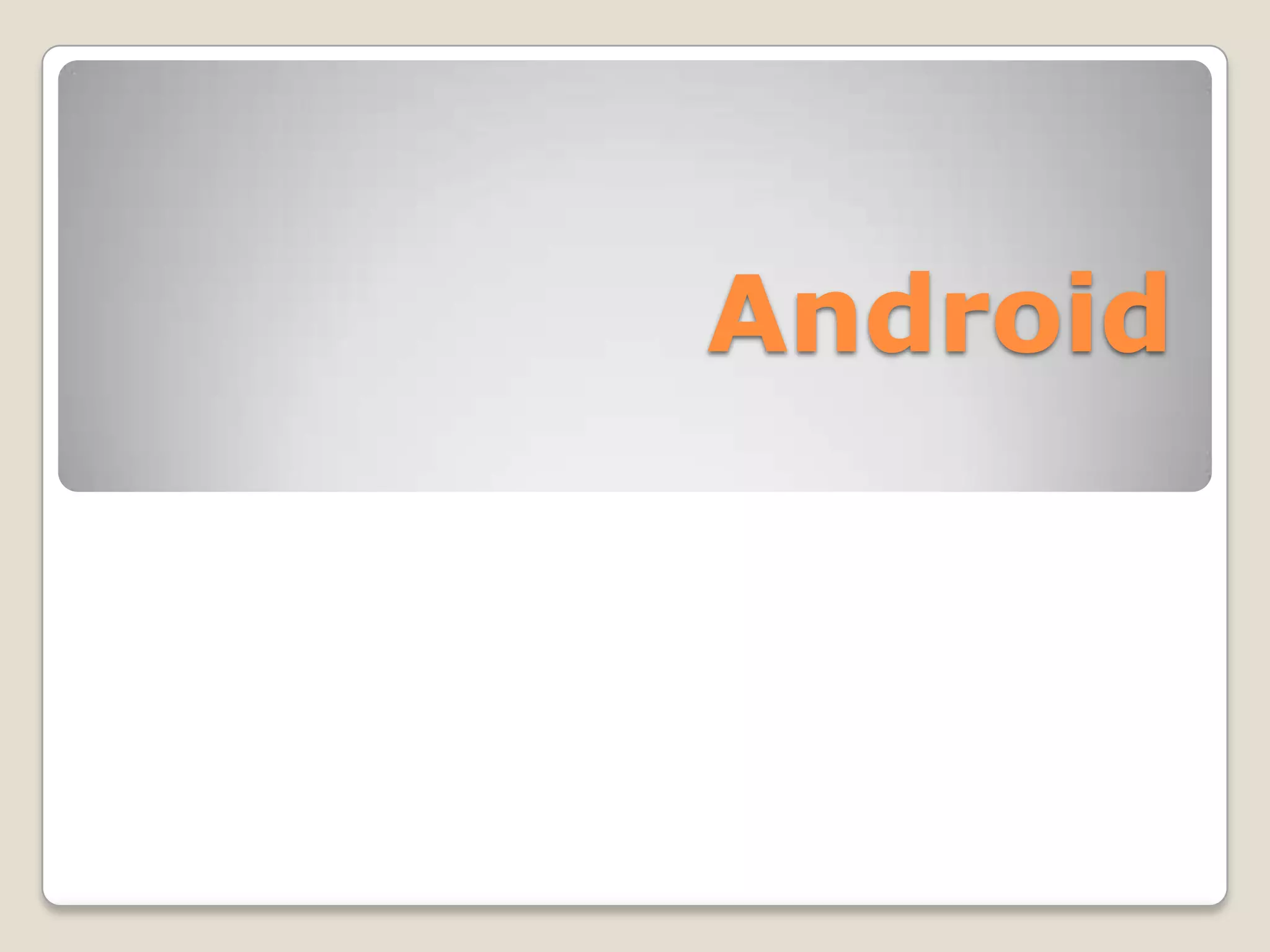 Android es un sistema operativo móvil basado en Linux desarrollado por Google y la Open Handset Alliance para dispositivos móviles como teléfonos inteligentes y tabletas. Fue creado originalmente por Android Inc. y tiene una gran comunidad de desarrolladores que han creado más de 400,000 aplicaciones disponibles en Google Play. El código de Android se liberó bajo una licencia de código abierto en 2007.