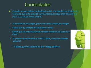 3) Las actualizaciones de Android reciben nombres de postres debido al logo de Android que representa un robot verde llamado Andy.