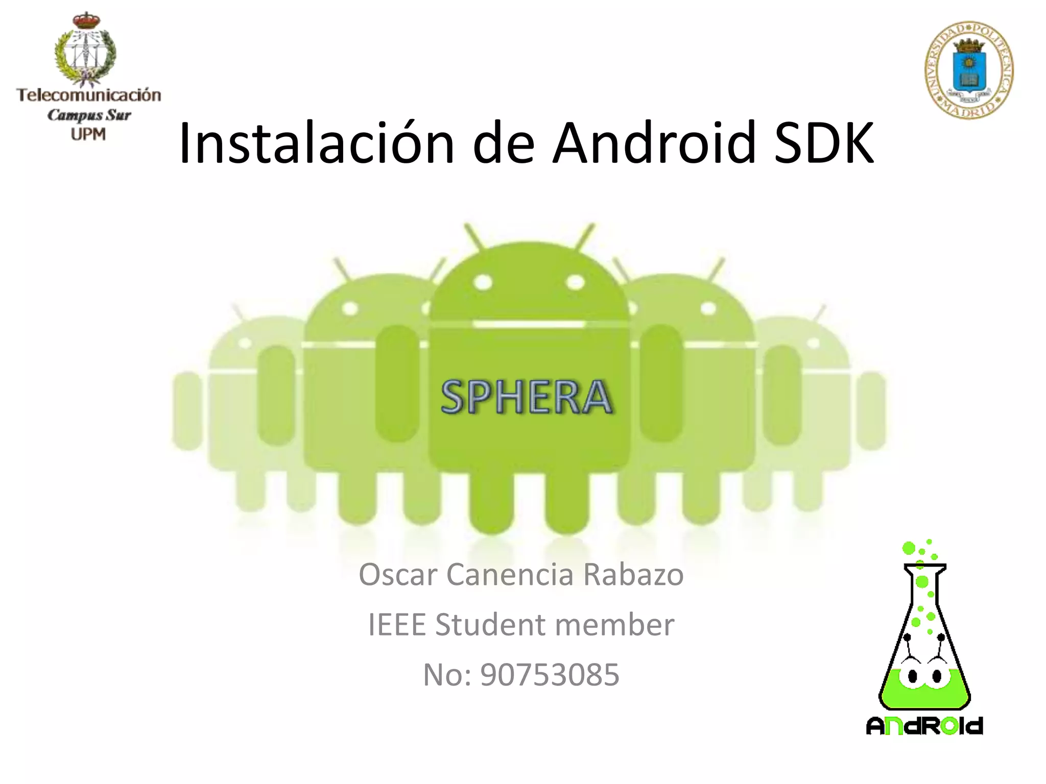 Este documento proporciona instrucciones para instalar el Android SDK, configurar Eclipse para desarrollo de Android, y crear una aplicación "Hello World" simple. Explica cómo descargar e instalar el JDK, SDK de Android, y complementos de Eclipse, y cómo configurar un proyecto Android en Eclipse para compilar e instalar aplicaciones en un dispositivo Android.
