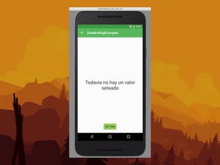 Data binding es una técnica en Android que permite establecer una unión entre los elementos de la interfaz de usuario y un modelo de datos. Ofrece ventajas como escribir menos código repetitivo, no requerir findViewById, y posibilidad de sincronización automática de datos. La configuración involucra definir un objeto de datos y vincularlo al layout, y luego se pueden acceder a los atributos y establecer valores personalizados.