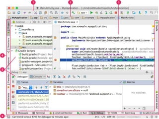 Este documento describe los requisitos y características de Android Studio, un entorno de desarrollo integrado para crear aplicaciones para Android. Android Studio incluye herramientas para editar, depurar y probar código, así como una vista previa del diseño de las aplicaciones. El documento explica los requisitos mínimos para usar Android Studio en Windows, Mac y Linux.