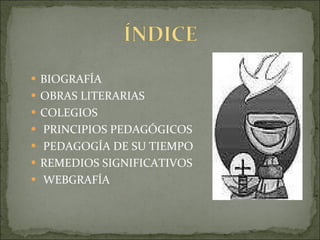 Andrés Manjón fue un sacerdote y pedagogo español nacido en 1846 que fundó las primeras escuelas del Ave María en Granada en 1889. Creía en una educación integral, progresiva y que comenzara desde la niñez, basada en los principios cristianos. Escribió varios libros sobre sus ideas pedagógicas que promovían una enseñanza activa, moral y religiosa para formar ciudadanos conscientes de sus deberes. Sus escuelas se expandieron por Granada y otras zonas con el objetivo de proveer una