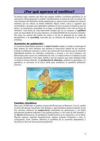 El Neolítico se refiere al período de la Prehistoria en el que aparecen la agricultura y la ganadería. Hace unos 10,000 años, las sociedades humanas comenzaron a abandonar su estilo de vida de cazadores-recolectores para adoptar uno sedentario basado en el cultivo de la tierra y la domesticación de animales. Esto marcó un cambio radical en la forma en que los humanos obtenían alimentos.