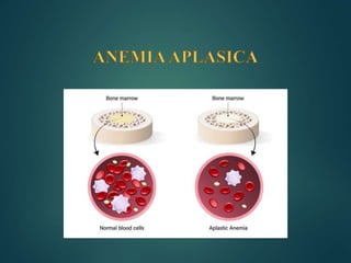 La aplasia medular es una insuficiencia medular caracterizada por la desaparición parcial o total de los precursores hematopoyéticos en la médula ósea, lo que da lugar a una pancitopenia periférica. Puede ser congénita o adquirida por fármacos, radiaciones u otros factores. El tratamiento depende de la gravedad y puede incluir factores de crecimiento, inmunosupresores o trasplante de médula ósea alogénico.