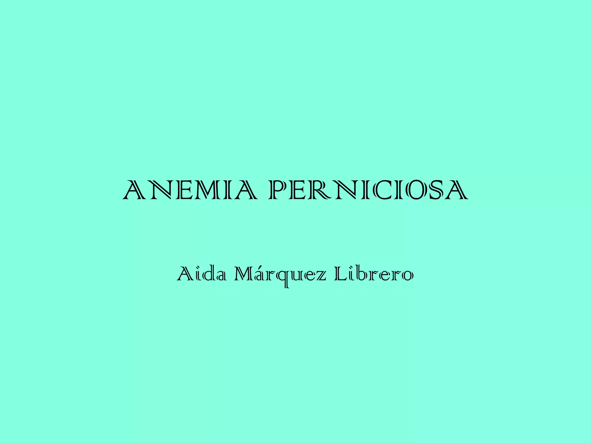 La anemia perniciosa es un tipo de anemia megaloblástica causada por la falta de absorción de la vitamina B12 debido a la no secreción de la proteína transportadora del factor intrínseco. Los síntomas son leves pero incluyen fatiga, falta de apetito y piel pálida. El diagnóstico se realiza mediante exámenes de sangre y médula ósea que muestran bajos niveles de vitamina B12. El tratamiento consiste en inyecciones mensuales de vitamina B12 de por vida.