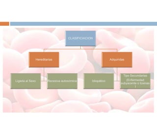 Este documento describe la anemia sideroblástica y los cuerpos de Pappenheimer. Explica que los cuerpos de Pappenheimer son depósitos de hierro observados en varias condiciones como síndromes mielodisplásicos y anemia sideroblástica. La acumulación excesiva de hierro en las mitocondrias de los eritroblastos conduce a la aparición de sideroblastos en anillo. Los síntomas incluyen debilidad, falta de aliento y hepatomegalia. El diagnóstico se realiza median