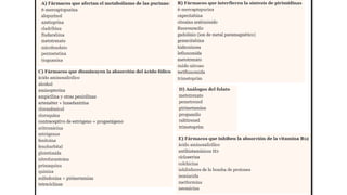 Este documento resume las causas y tratamientos más comunes de varios tipos de anemia. Describe que la anemia ferropénica se trata con suplementos orales de hierro o inyecciones de hierro si los suplementos orales no son tolerados o efectivos. Explica que la anemia megaloblástica requiere suplementos vitamínicos adecuados, como folato o vitamina B12, dependiendo de la deficiencia subyacente. Finalmente, indica que los tratamientos para la anemia aplásica incluyen trasplantes