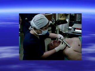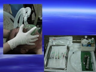 El documento proporciona una definición y descripción general de la anestesia general. Explica que la anestesia general involucra el uso de fármacos para inducir un estado de inconsciencia, pérdida de sensibilidad al dolor y relajación muscular. Luego describe las etapas clave de la anestesia general, incluida la preparación, inducción, mantención y recuperación del paciente, así como los objetivos y fármacos utilizados en cada etapa. Finalmente, brinda detalles sobre los procedimientos preoperatorios, intraoperatorios